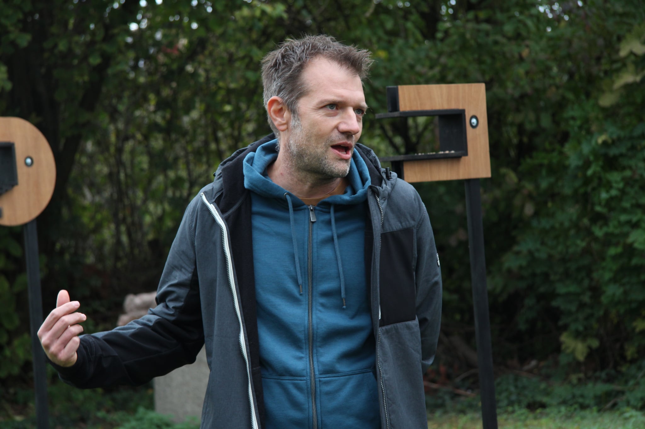 Schenk Attila Etetőkert című kiállítása elé /